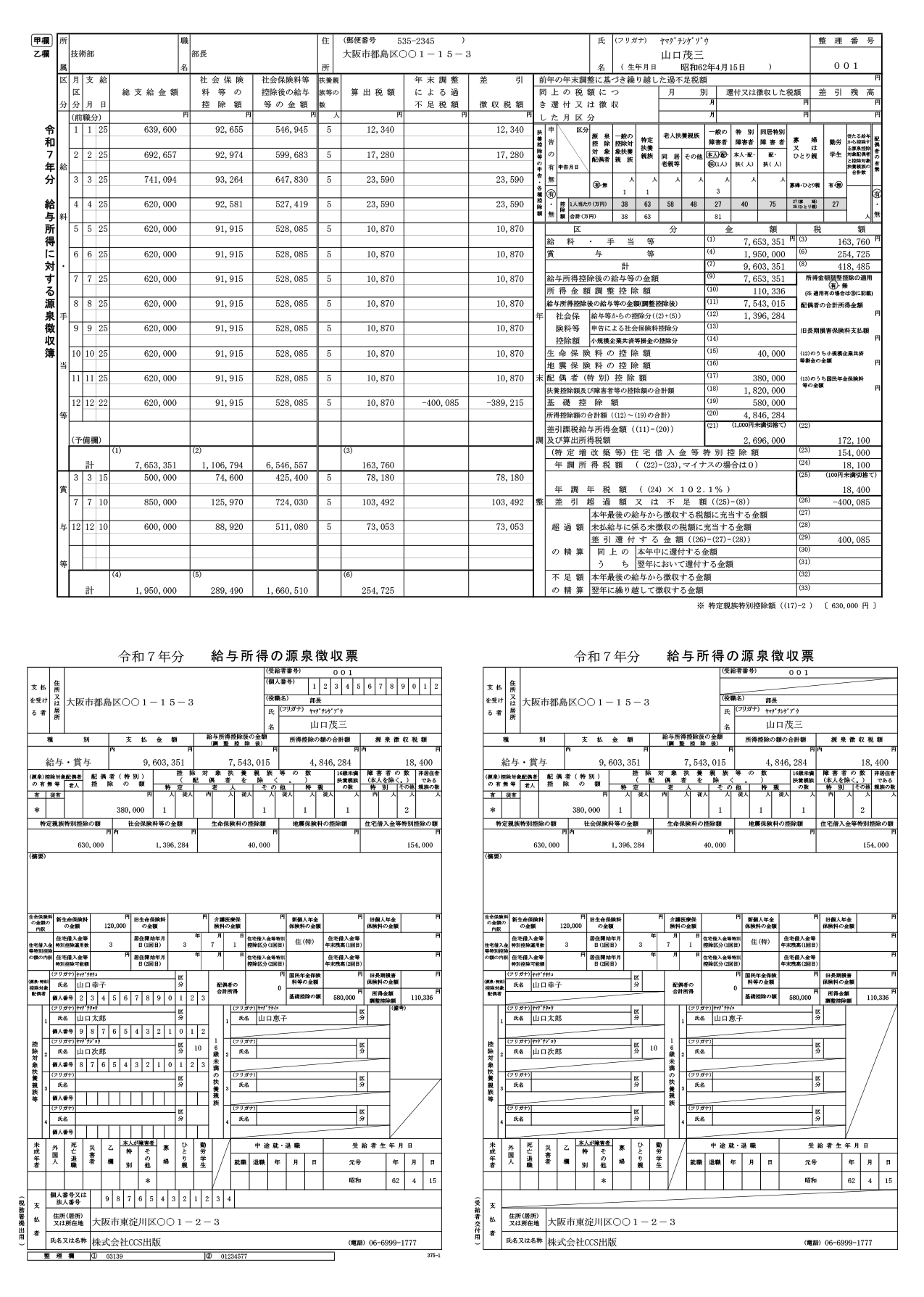 令和7年支給の給与・賞与の支給額・社会保険料・扶養親族数・所得税額をそれぞれ入力します。