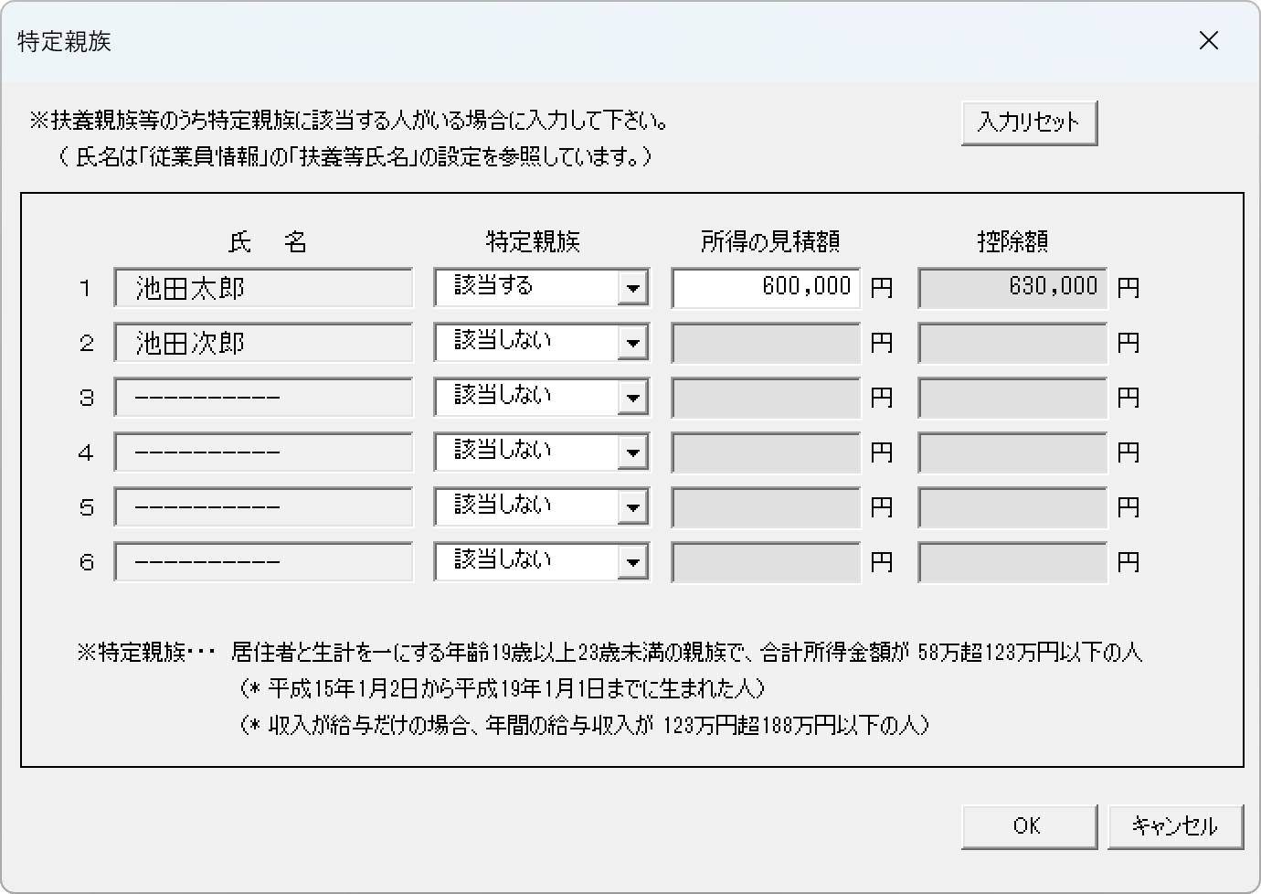 従業員の個人番号または配偶者・扶養親族の個人番号や氏名を入力することができます。