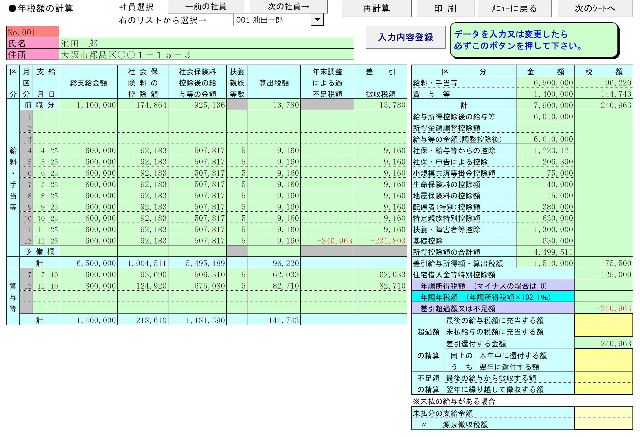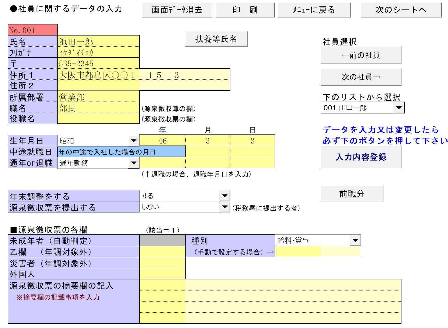 - 従業員数は退職者を含めて100名までです。(100名を超える場合の処理はできません。)