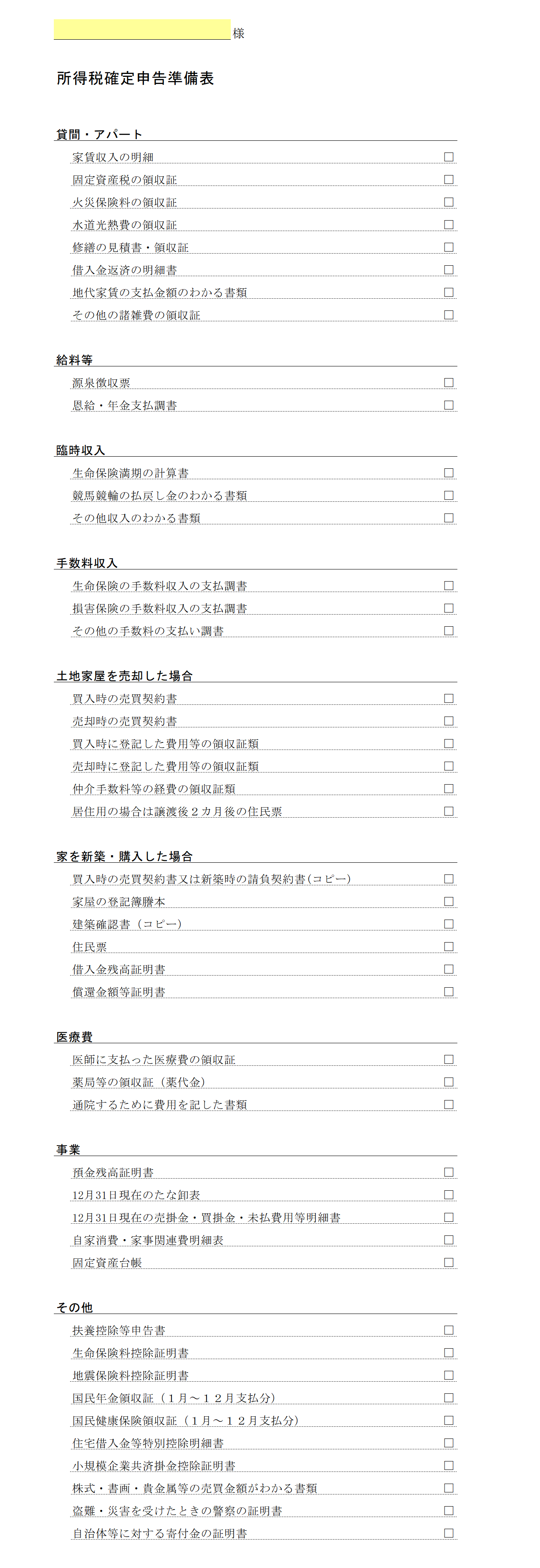 宛先や日付を入力して印刷後、手書きでチェックして頂くようになっています。