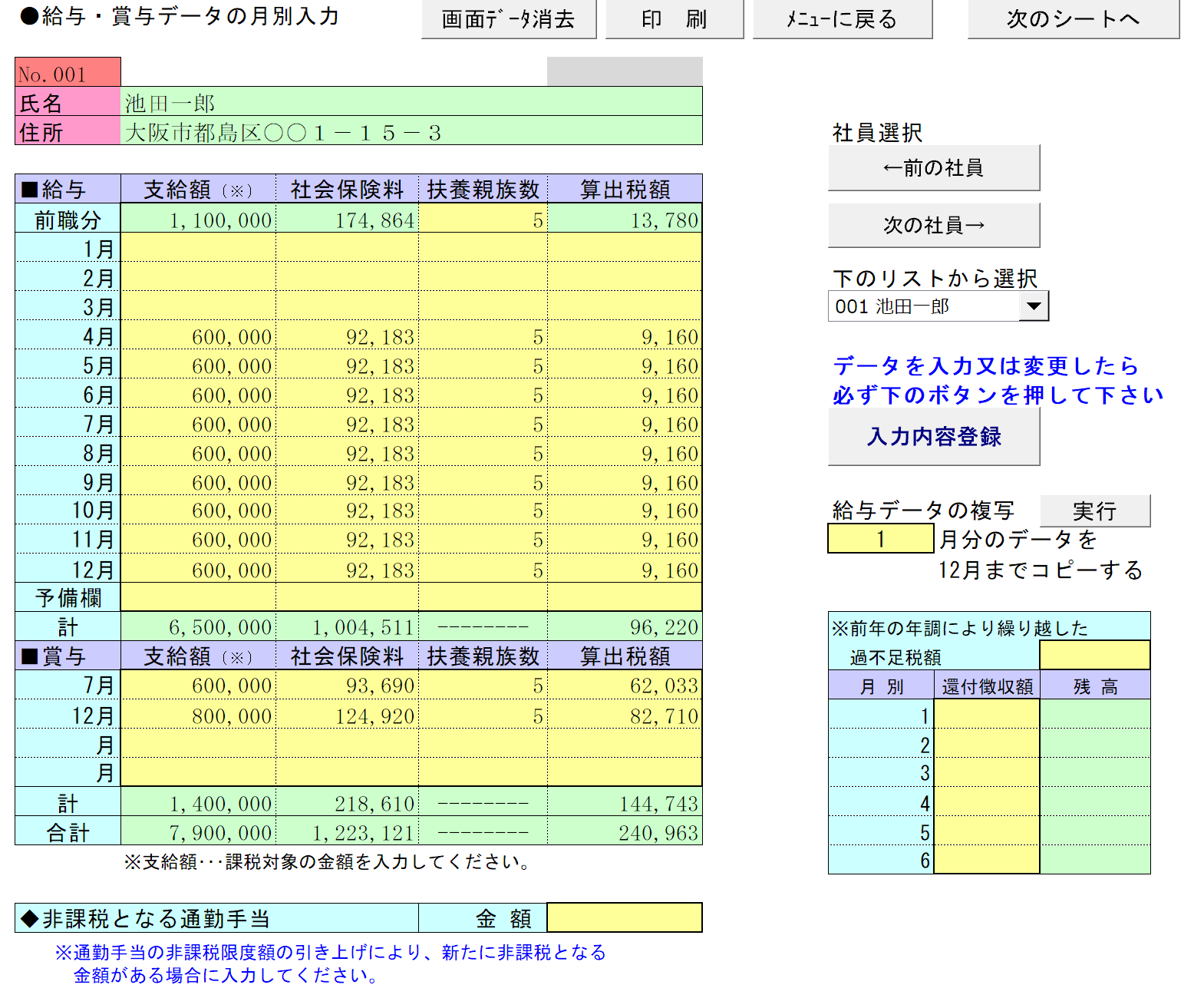 - 従業員数は退職者を含めて100名までです。(100名を超える場合の処理はできません。)